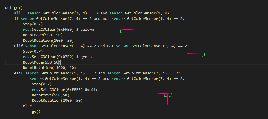 Ничего не работает, робот живет своей жизнью…Походу придется делать костыли для разных поворотов. Буду отлаживать прямо на полигоне на соревнованиях, так как там будет другое освещение, клетки(может быть грязные клетки) и придется все настраивать заново(